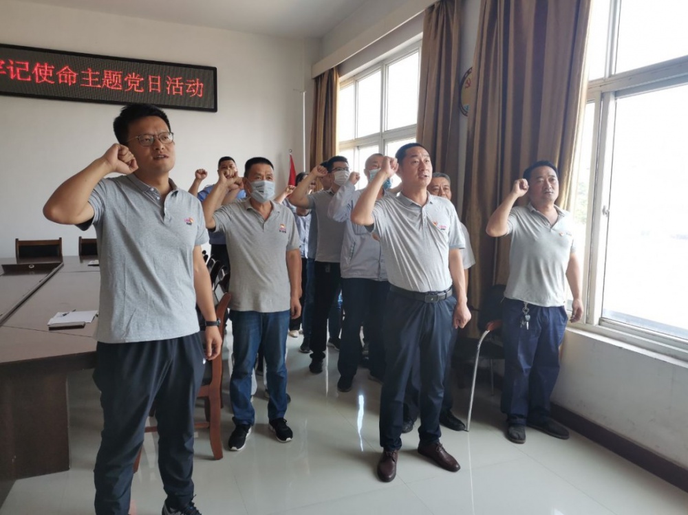 在總經(jīng)理徐正本同志的帶領(lǐng)下,黨員同志們神情肅穆、舉起右拳,重溫入黨誓詞?!拔抑驹讣尤胫袊伯a(chǎn)黨……隨時準(zhǔn)備為黨和人民犧牲一切,永不叛黨。”鏗鏘恢宏的誓詞,強烈震撼著在場的每一位黨員,一字一句,神圣豪邁,體現(xiàn)了黨員對中國共產(chǎn)黨的無限忠誠。